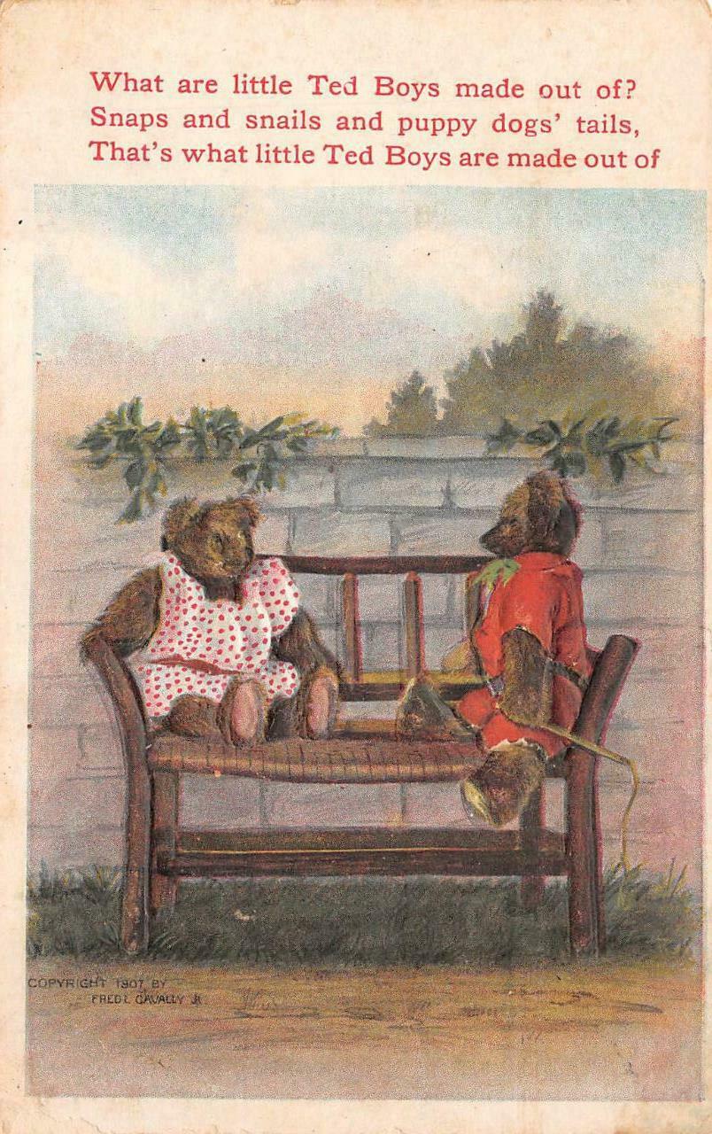 Teddy bears sitting on bench romance poem embossed postcard 1909 teddy bears sitting on bench romance poem embossed postcard 1909 click images to enlarge description very attractive and historic postcard showing teddy bears. Sent 1909, divided back with some corner bumping/wear & toning. Fine condition. Shipping is $2.00 domestic and $3.00 international. Purchases at/over $49.95 must be insured. All items/orders selling for over $49.95 will be based upon final sale price. Seller will combine multiple purchases. Wait for an please invoice from seller before making payment. Please take a look at my other listings. There is a clickable link to view a larger picture. The scans accurately reflect the condition yet if you have any questions please feel free to ask. Check out the other items i have for sale! Get images thatmake supersized seem small.Showcase your items with auctiva'slisting templates!The simple solution for Hip sellers.Track page views withauctiva's free counter
