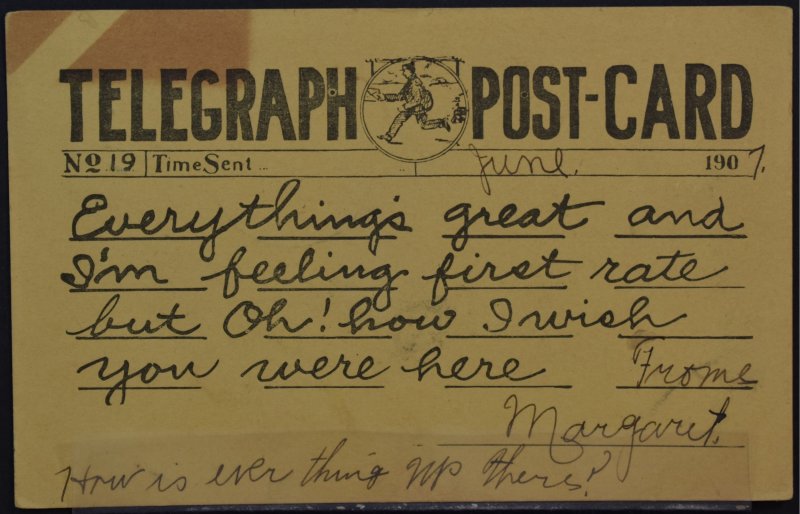 Telegraph Post Card - Mehoopany, PA 1907 cancel