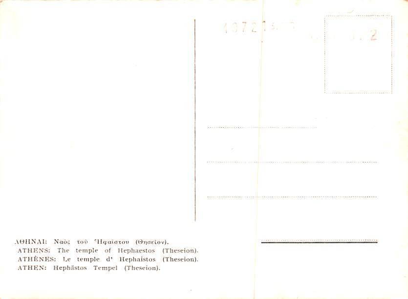 Temple of Hephaestos Athens, Greece Grade: 1 Size: Continental Size - approximatly 4 Inch x 6 Inch (15 cm x 10.5) Grading Scale: Grade 1 = Perfect corners Grade 2 = Very Minimal corner wear, no creases Grade 3 ... Read More