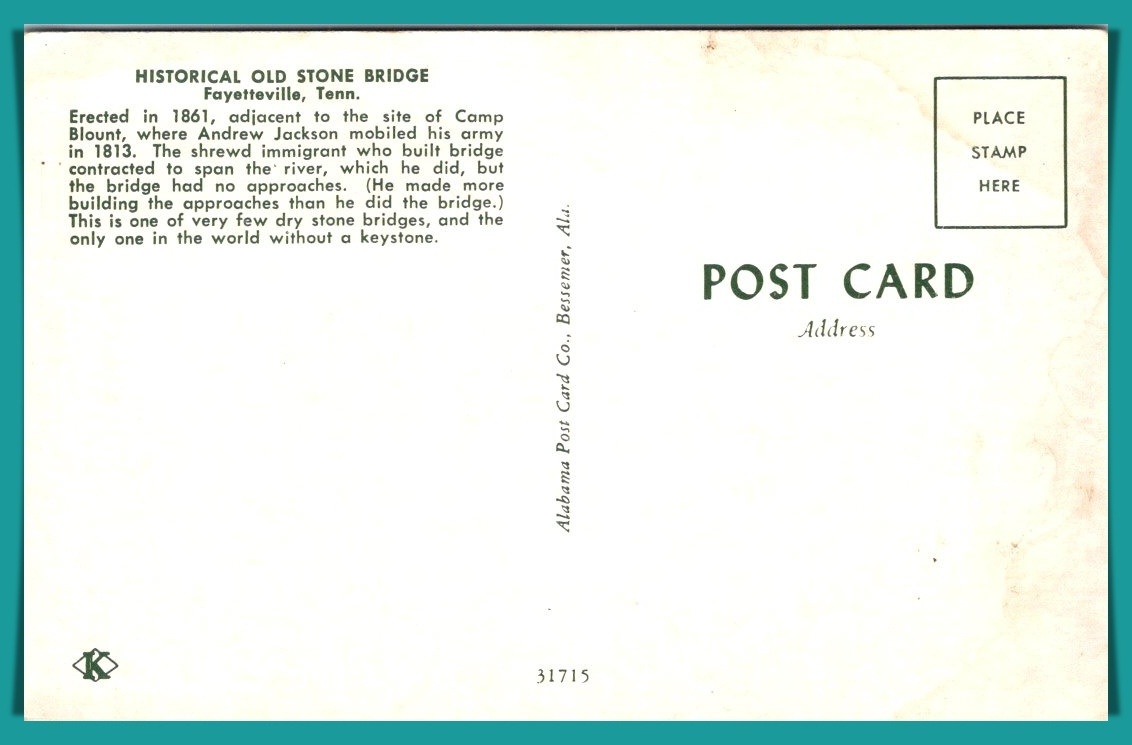 Tennessee, Fayetteville - Historical Old Stone Bridge- [TN-118]