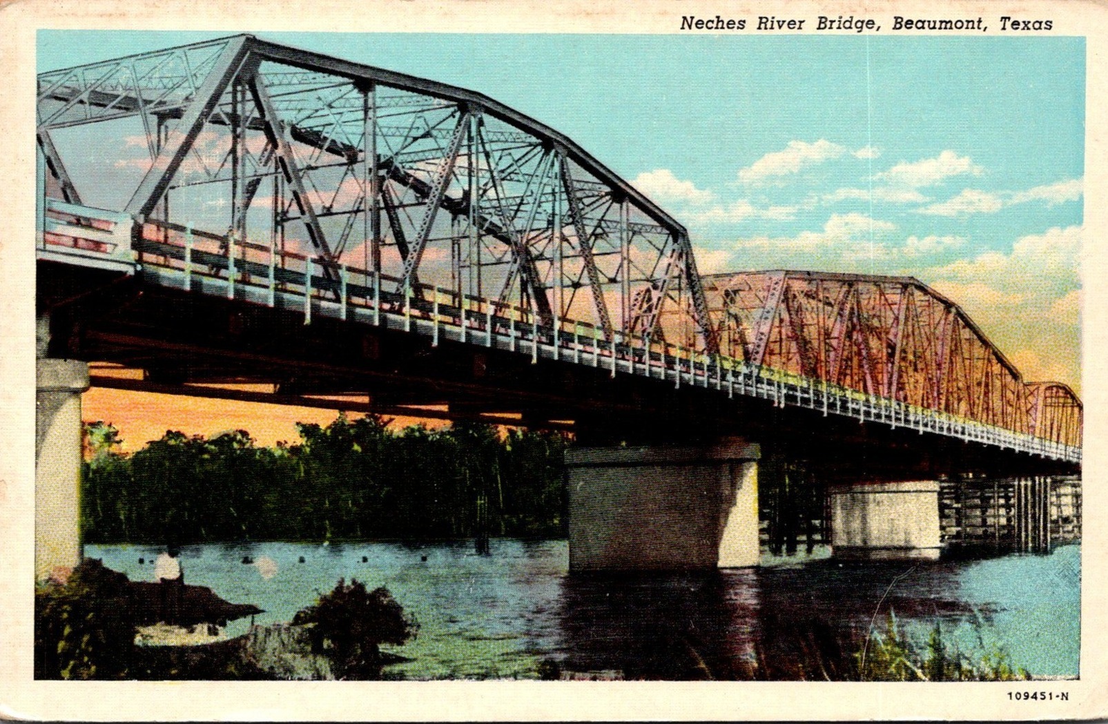 Texas Beaumont Neches River Bridge 1944 Curteich