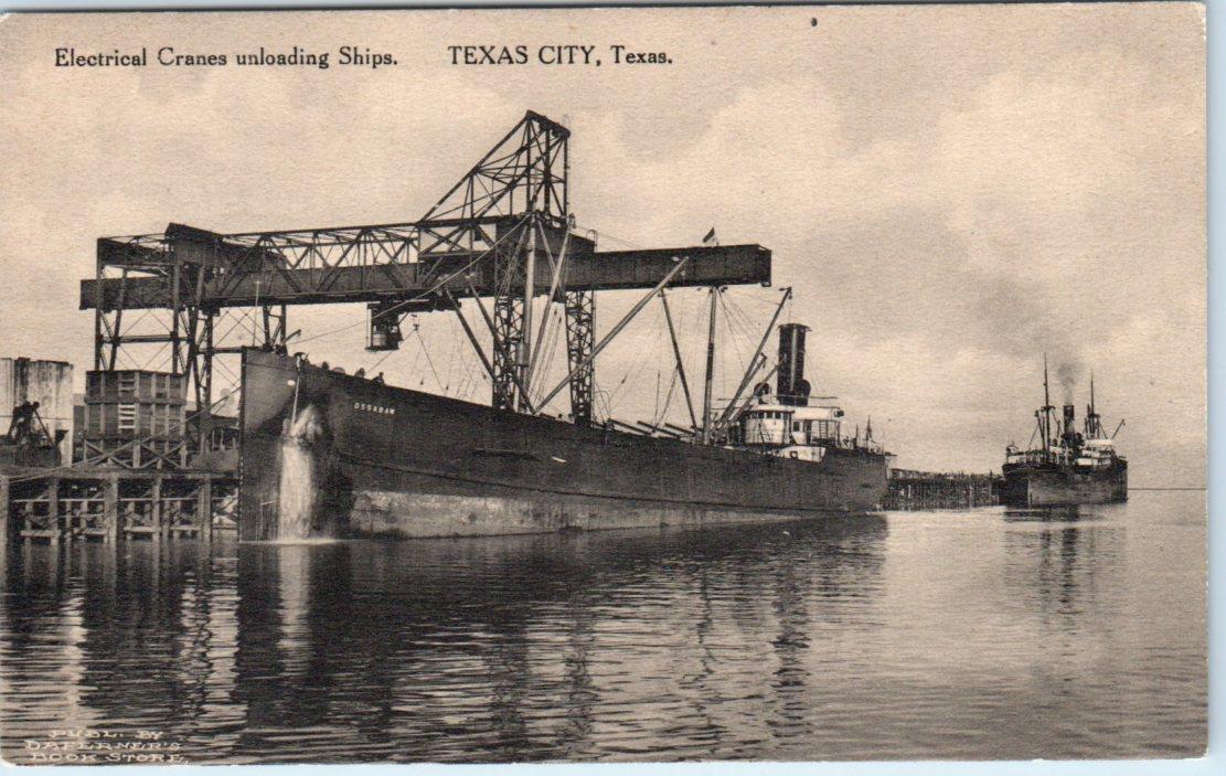 Texas city, tx electrical cranes unloading ships albertype postcard