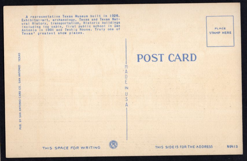 Texas SAN ANTONIO Witte Museum Brackenbridge Park LINEN