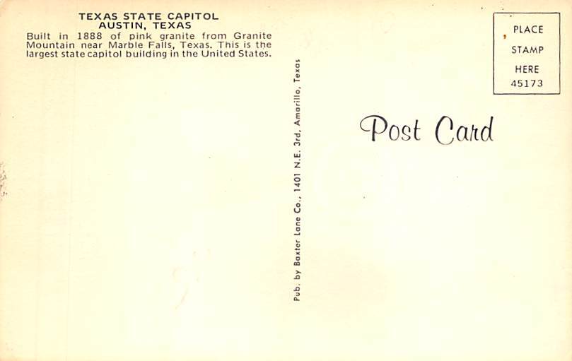 Texas State Capitol Six Flags - Austin, Texas TX Postal Date: View Images Grade: 1 Size: Regular Size Postcard - approximately 3 1/2 inch x 5 1/2 inch (9 CM x 14 CM) Grading Scale: Grade 1 = Perfect corners G ... Read More