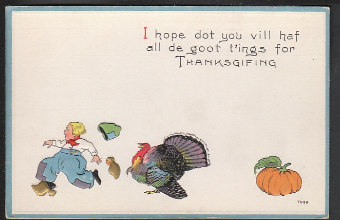 Thankgiving Turkey and Boy Post Card 5119