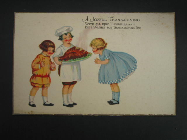 THANKSGIVING CHEF LETS GIRL SMELL TURKEY c1910 Postcard