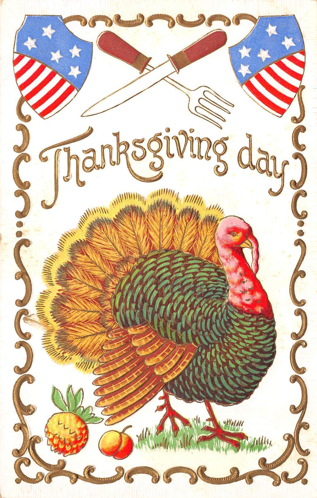Thanksgiving Day, Turkey & American Flags, AA374-27