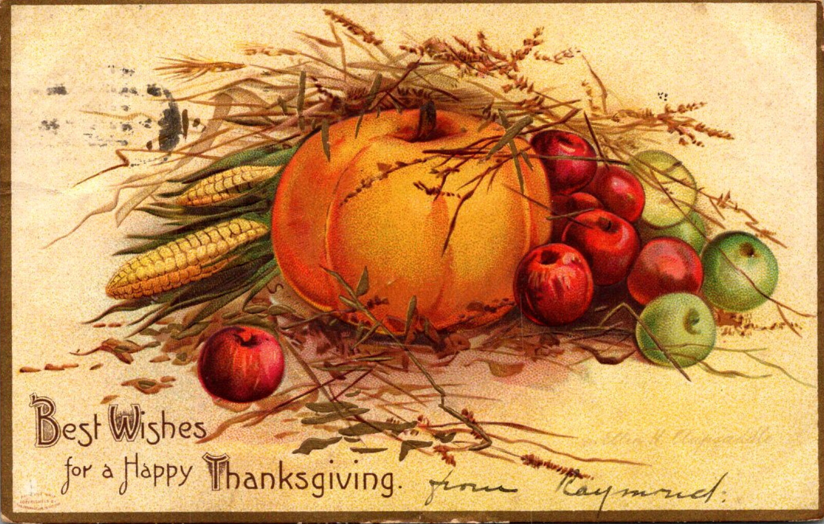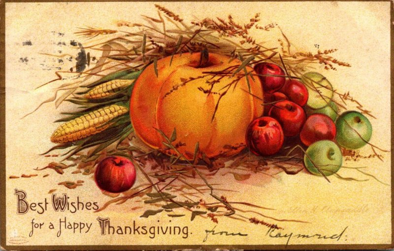 Thanksgiving Good Wishes With Pumpkin Clapsaddle 1908
