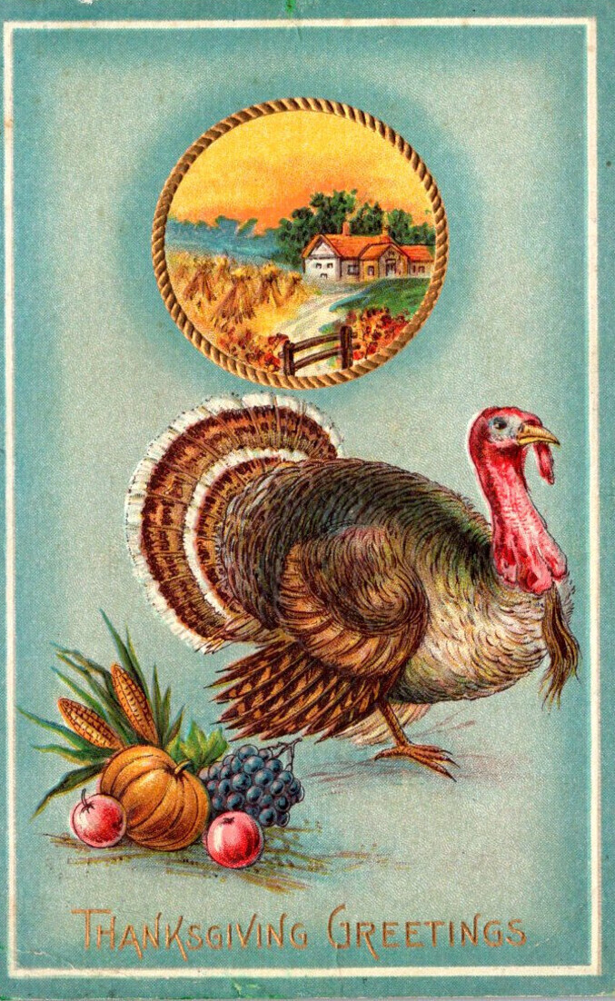 Thanksgiving Greeting With Turkey 1910