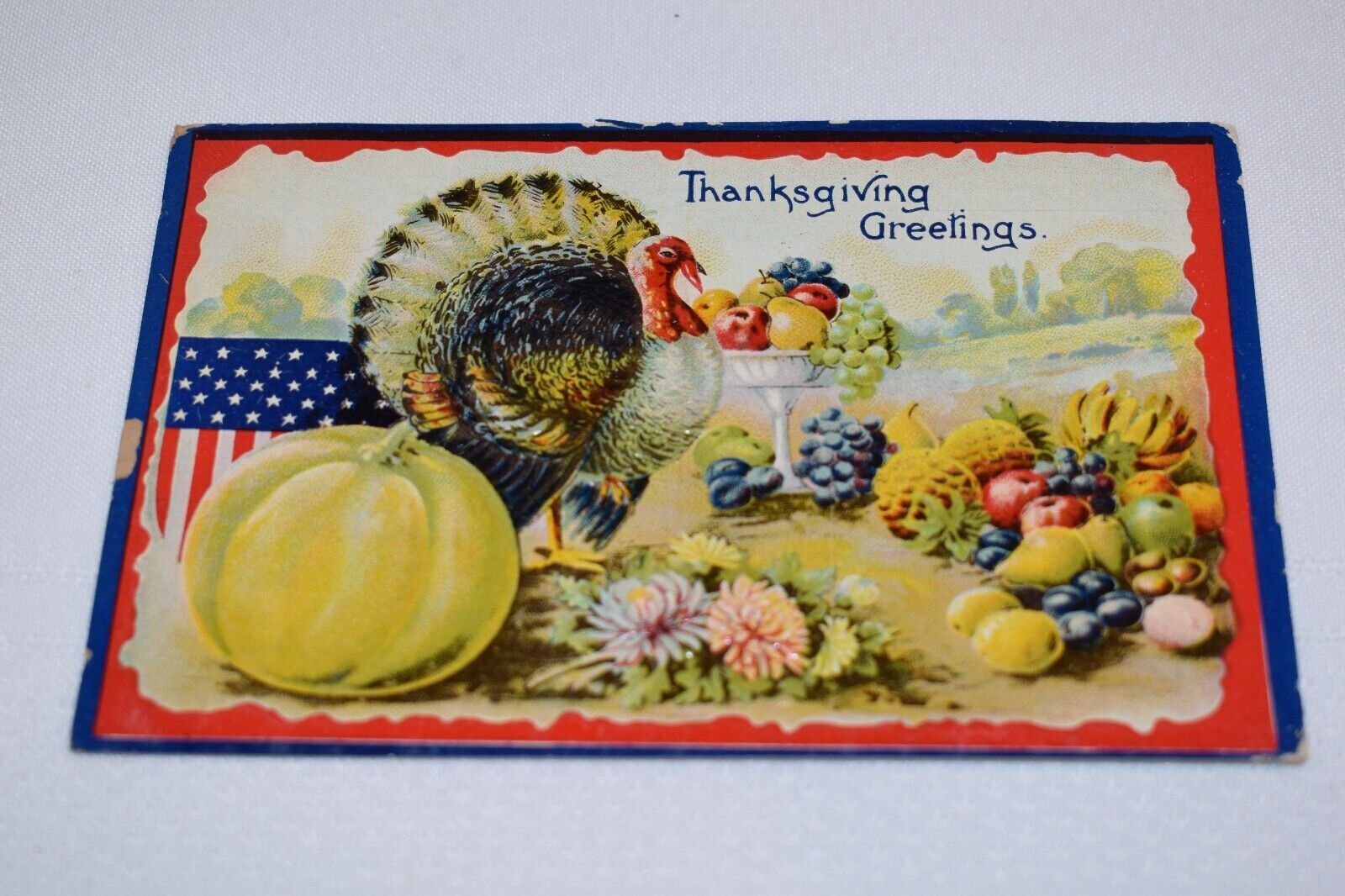 Thanksgiving Greetings Postcard US Flag Printed in Germany