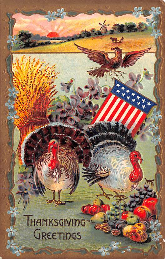 Thanksgiving Greetings USA Postcard 1910, Grade: 4, , Size: Regular Size Postcard - approximately 3 1/2 inch x 5 1/2 inch (9 CM x 14 CM) Grading Scale: Grade 1 = Perfect corners Grade 2 = Very Minimal corner we ... Read More