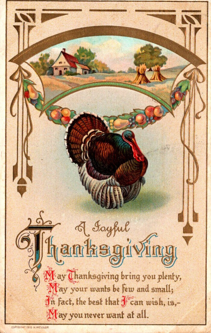 Thanksgiving Greetings With Turkey 1910
