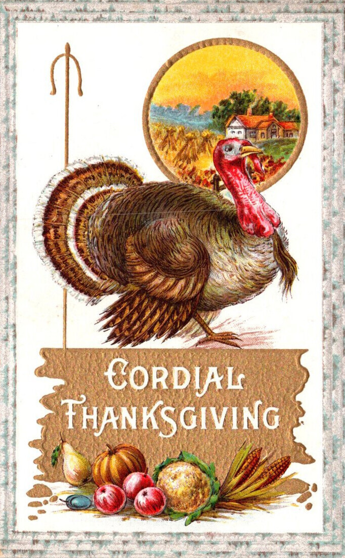 Thanksgiving Greetings With Turkey and Fruit