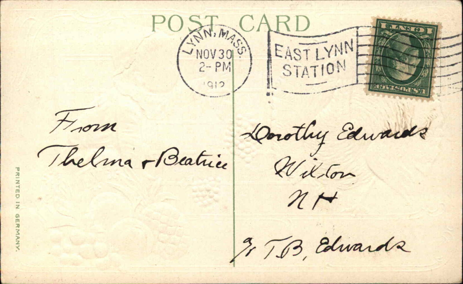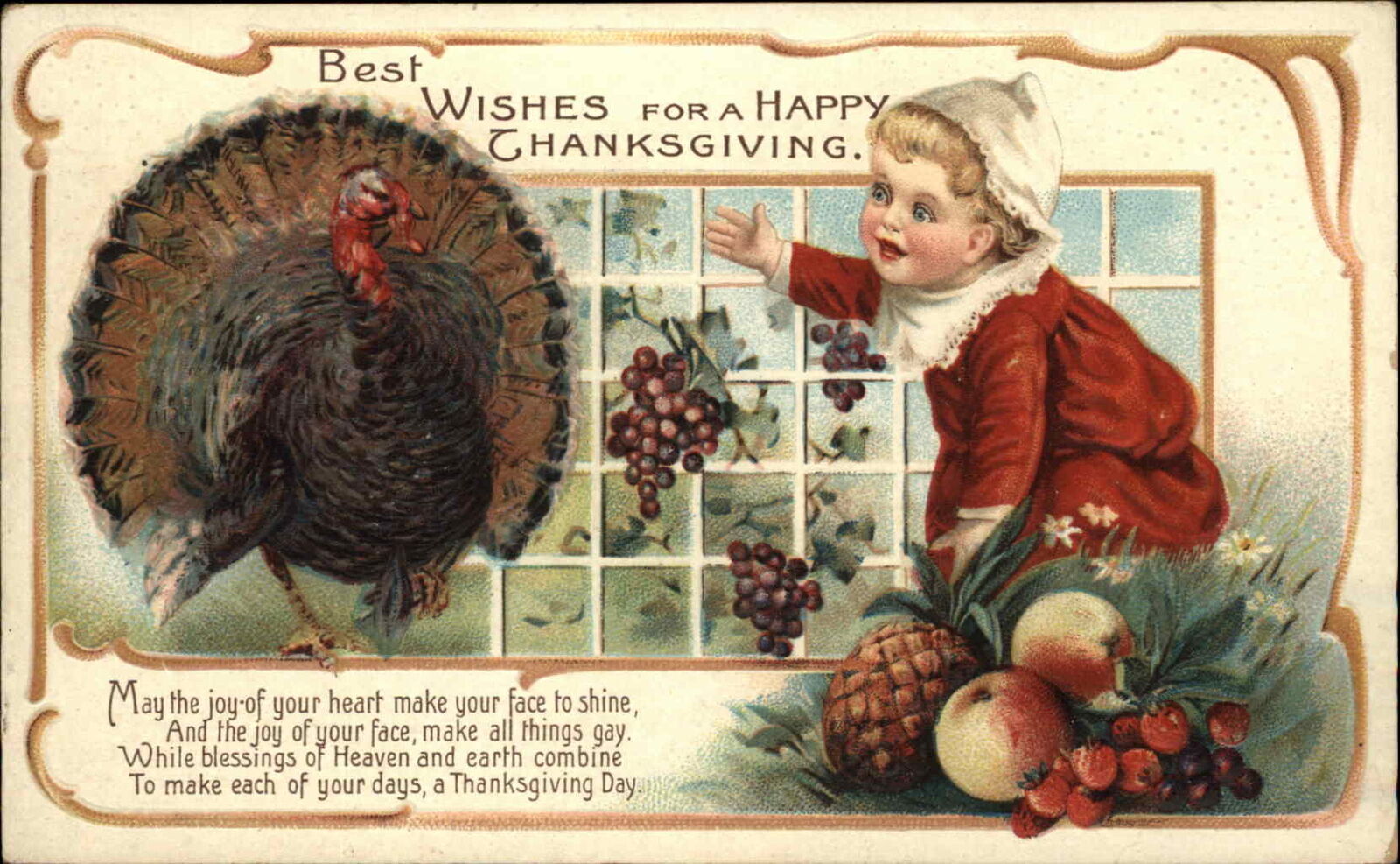 Thanksgiving Little Boy and Turkey Window Backdrop c1910 Vintage Postcard