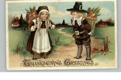 THANKSGIVING Little Boy & Girl Pilgrims c1910 Postcard
