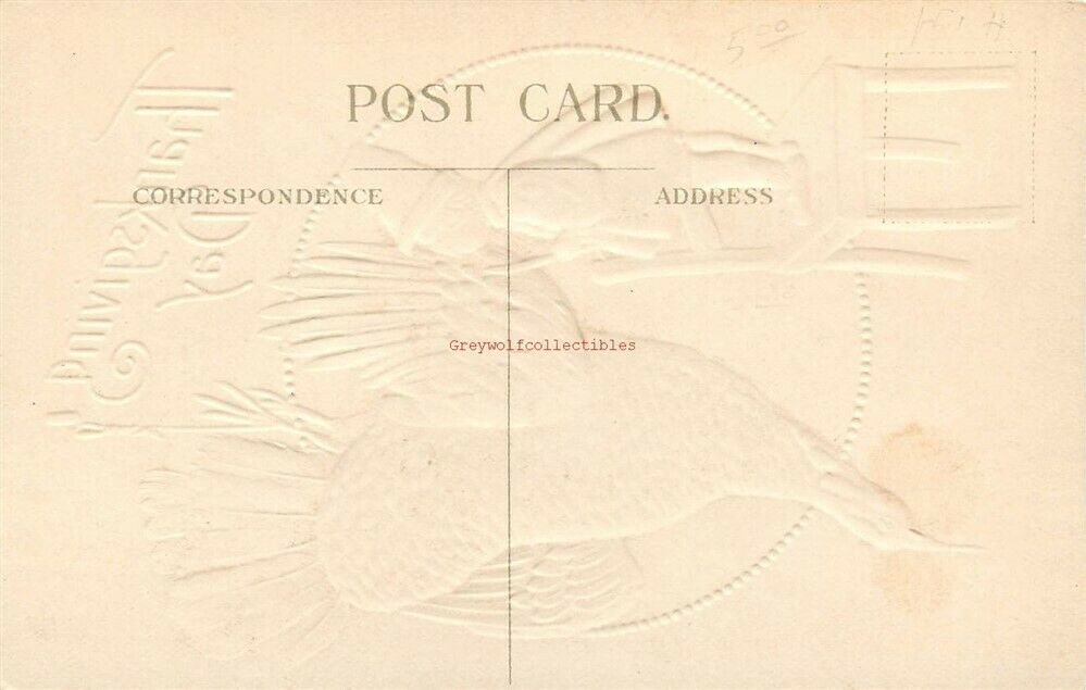 Early Printed Postcard Thanksgiving, Little Girl on chair getting ready to gut a turkey, Embossed Postmark: None Image: Nice and clean Corners: Light wear Faults/Other: