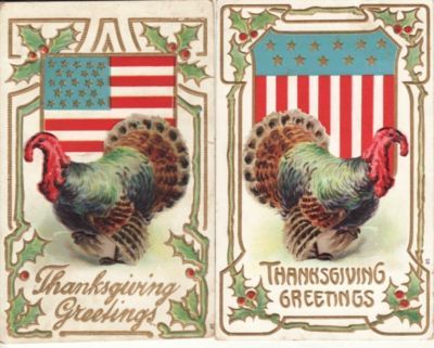 THANKSGIVING PATRIOTIC TURKEYS 2 postcards