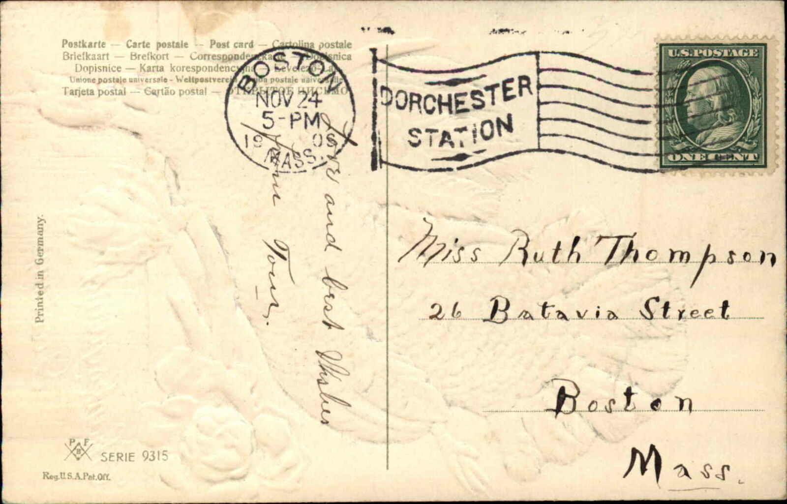 Thanksgiving Turkey Embossed Airbrushed c1900s-10s Postcard