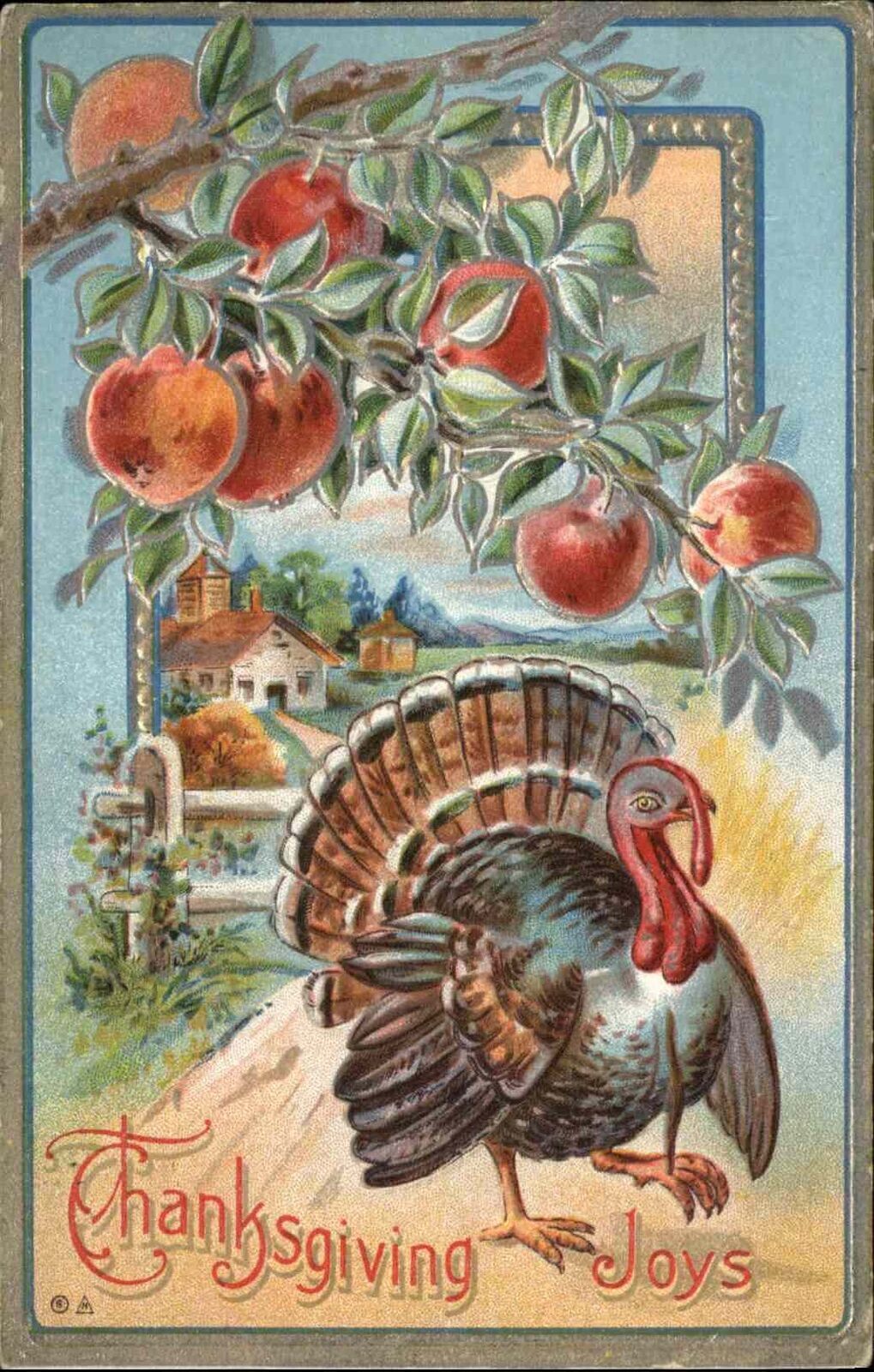 Thanksgiving Turkey Peach Tree Embossed Nash c1900s-10s Postcard