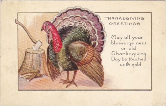 Thanksgiving Turkey Watching Axe On Chopping Block