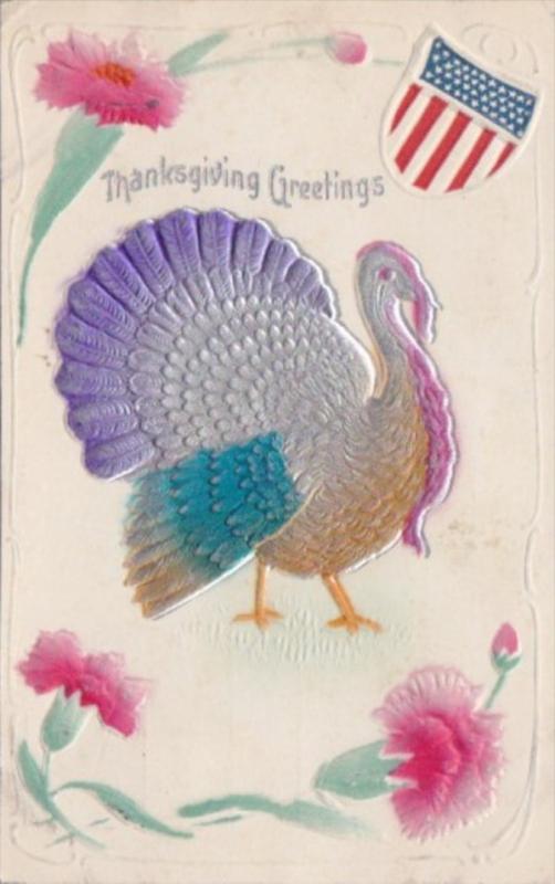 Thanksgiving Turkey With & Red White & Blue Shield 1909