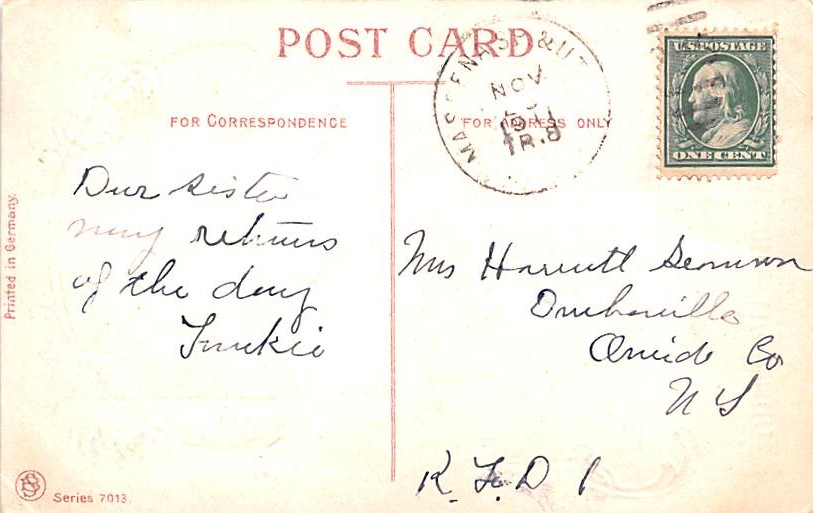 Thanksgiving Postcard , Grade: 4, , Size: Regular size: Approx 3 1/2 X 5 1/2 inch (9 cm X 14 cm) Grading Scale: Grade 1 = Perfect corners Grade 2 = Very Minimal corner wear, no creases Grade 3 = Some corner wea ... Read More