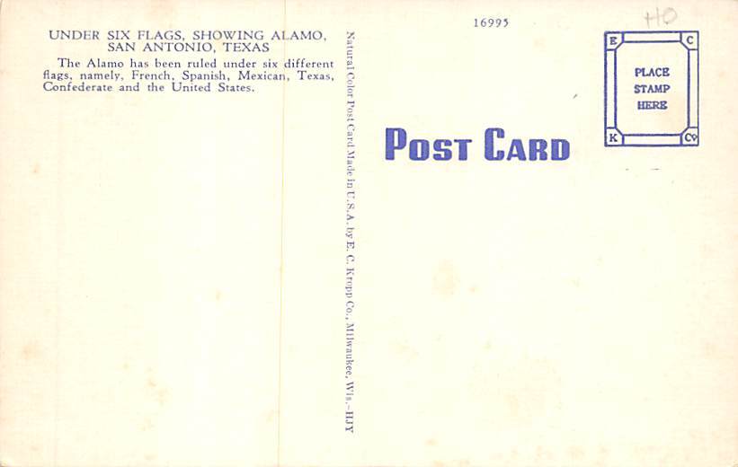 The Alamo Built Under Six Flags - San Antonio, Texas TX Postcard