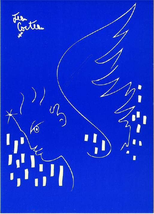 A postcard of the drawing _The Angel_ by the French Surrealist poet, novelist, dramatist, designer, boxing manager, playwright and filmmaker Jean Cocteau (1889-1963).
