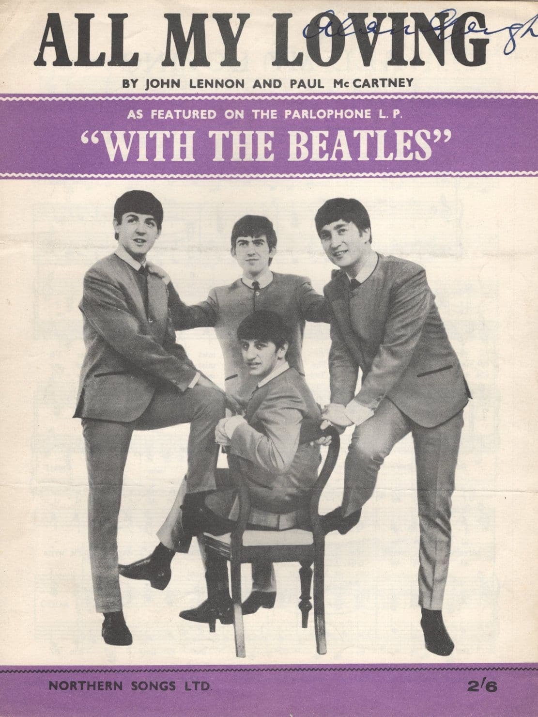 -SM- A vintage first edition sheet music for The Beatles All My Loving - has single but strong indent running across - name on cover - clean score (it no owner markings bar their name on cover) but whilst otherwis ... Read More