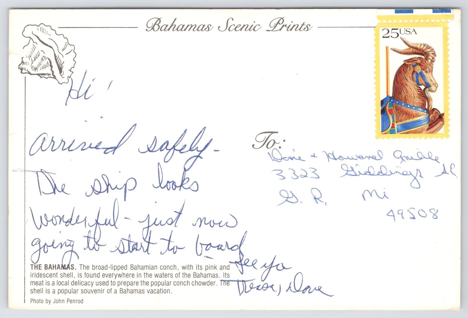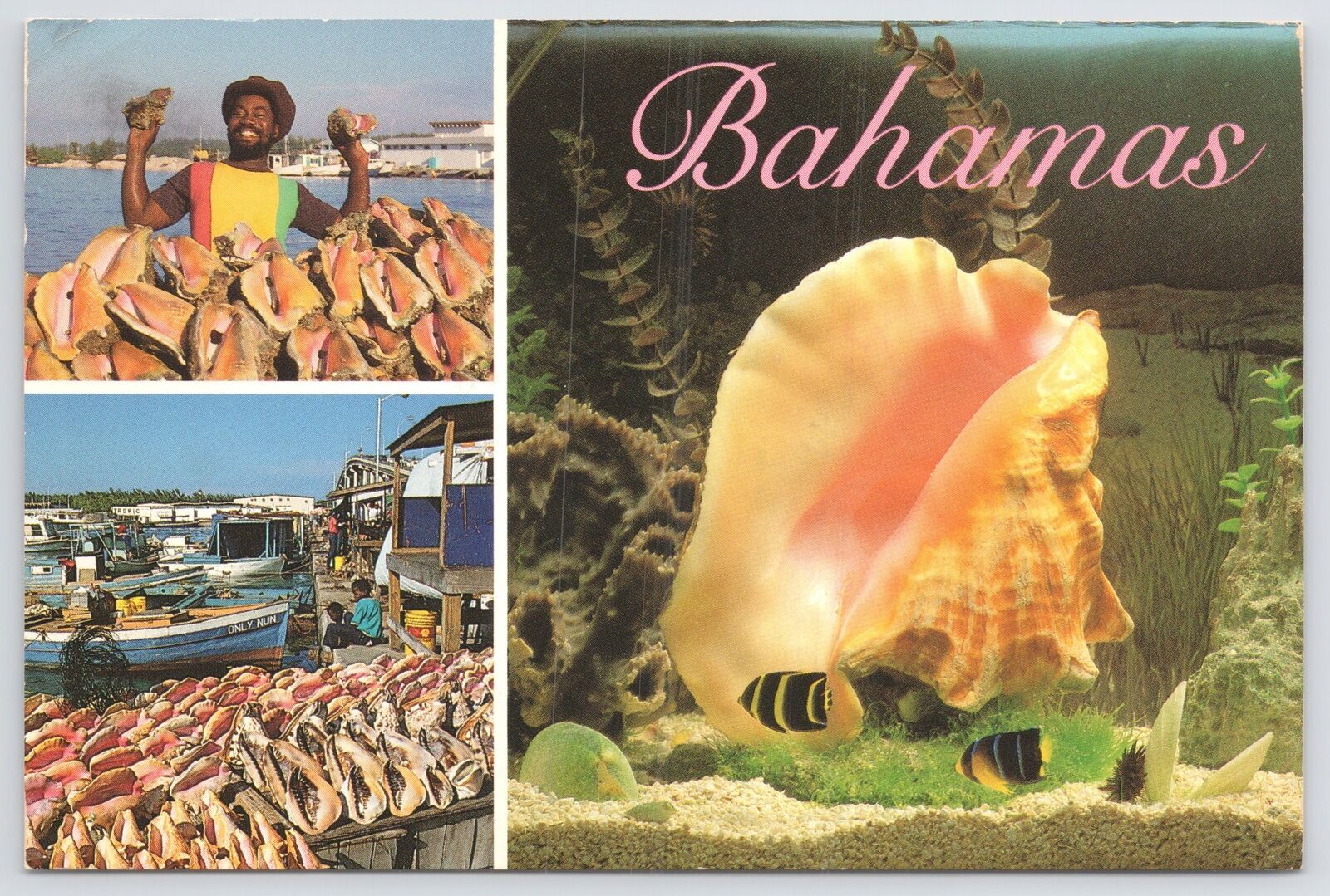 The Beautiful Bahamas~Man & Bahamian Conch~Boat Harbor~Fish~Shell~Continental PC