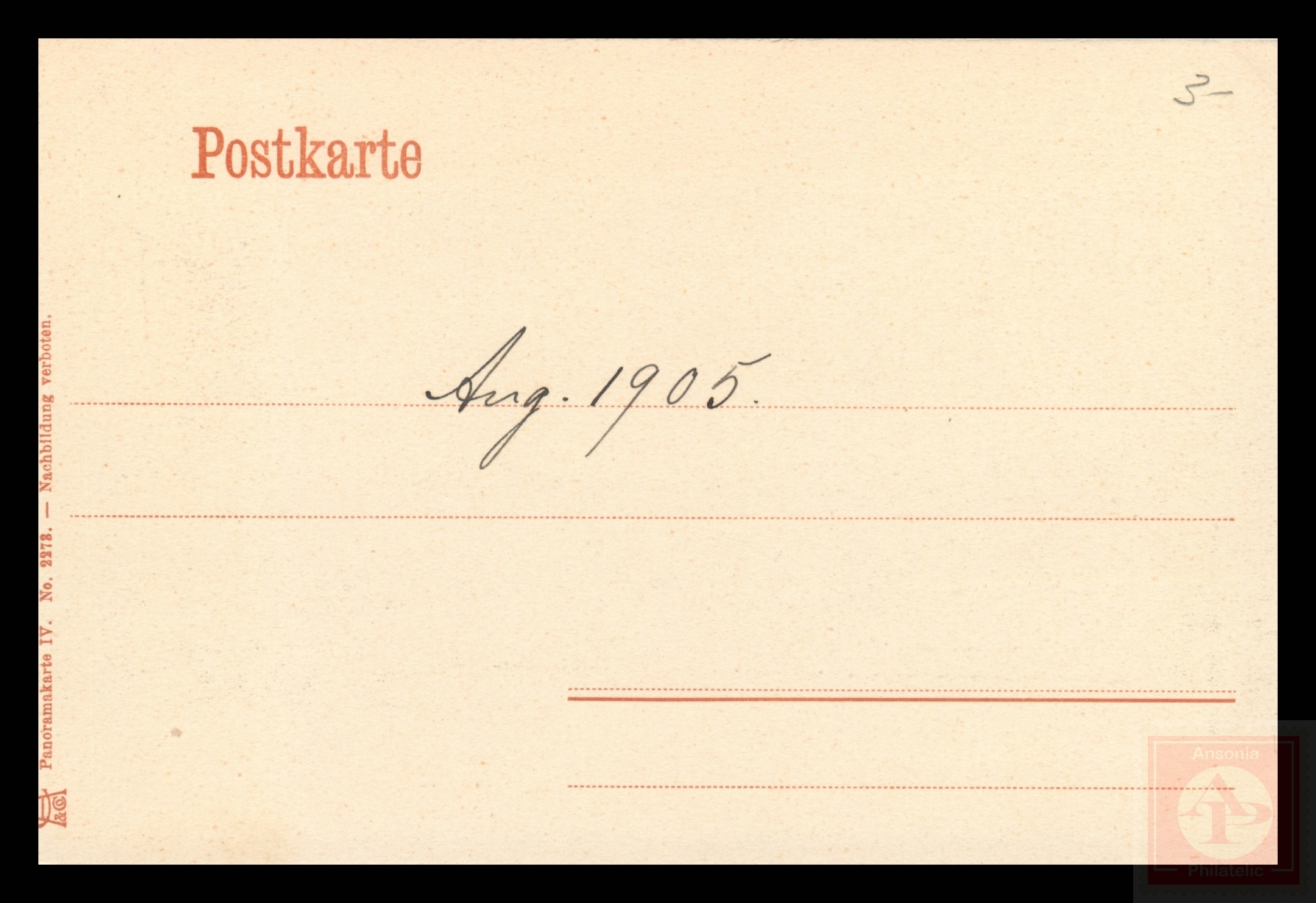 Some scans of postcards result in colored streaks which are a result of the error in scanning and not a fault of the postcard.