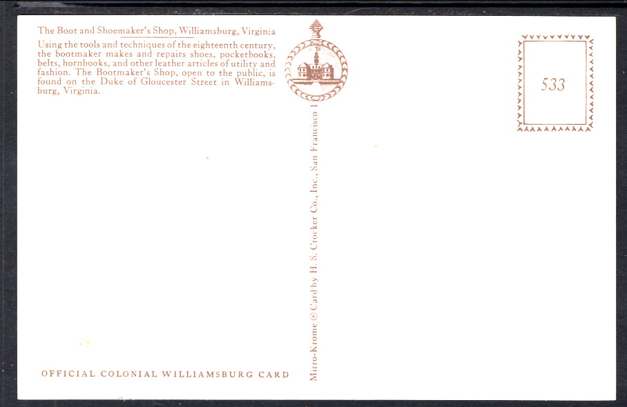 The Boot and Shoemaker's Shop,Williamsburg,VA BIN