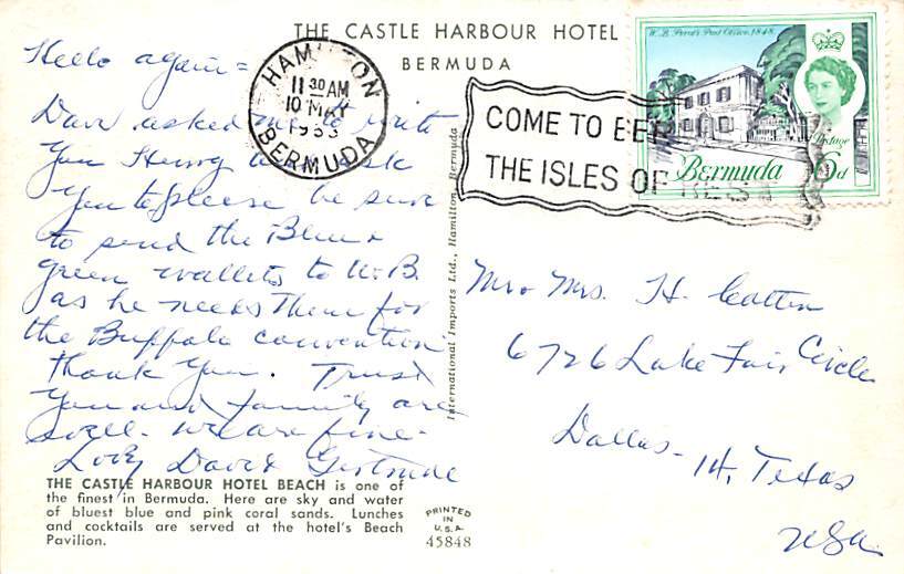 The Castle Harbour Hotel Beach Bermuda Postcard Postal Date: {{Product Field 4 ( Postal Used, Unused)}} Grade: 1 Size: Regular Size Postcard - approximately 3 1/2 inch x 5 1/2 inch (9 CM x 14 CM) Grading Scale ... Read More
