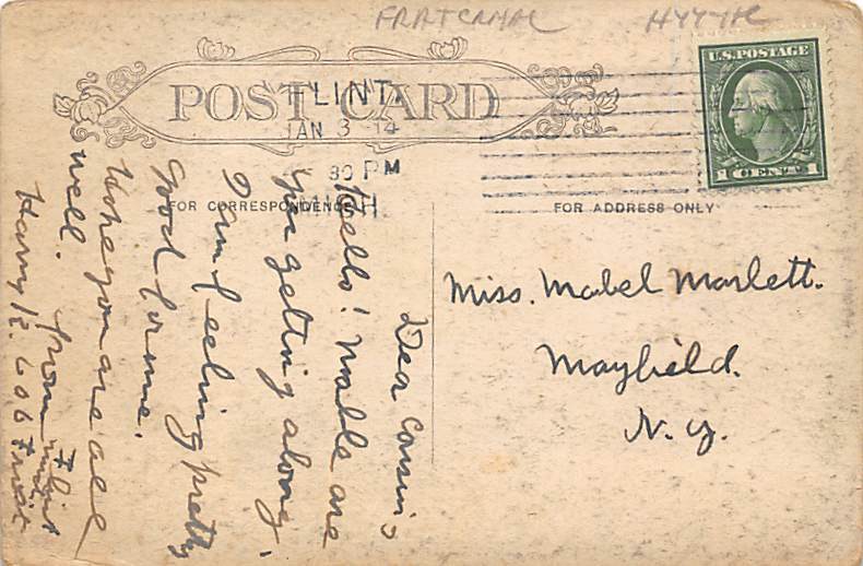 The Dryden Elks Home Flint Michigan Postcard - PU Unknown Grade: 3 Size: R - Regular size: Approx 3 1/2 X 5 1/2 inch (9 cm X 14 cm) Grading Scale: Grade 1 = Perfect corners Grade 2 = Very Minimal corner wear, ... Read More