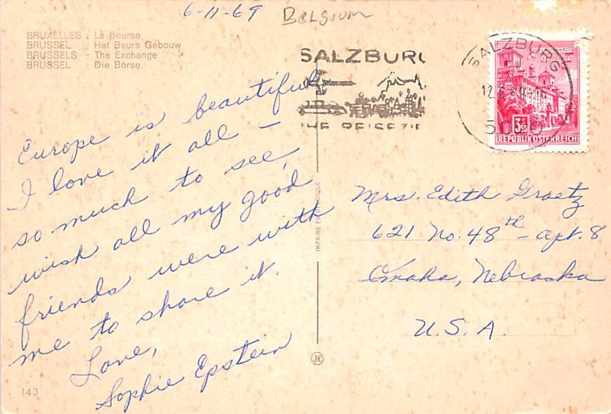 The Exchange Brussels Belgium Postcard 1969,