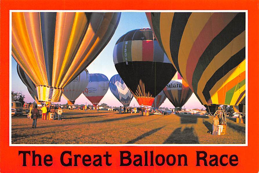 The Great Balllon Race, Ohio River Postcard Grade: 1 Size: Continental Size - approximatly 4 Inch x 6 Inch (15 cm x 10.5) Grading Scale: Grade 1 = Perfect corners Grade 2 = Very Minimal corner wear, no creases ... Read More