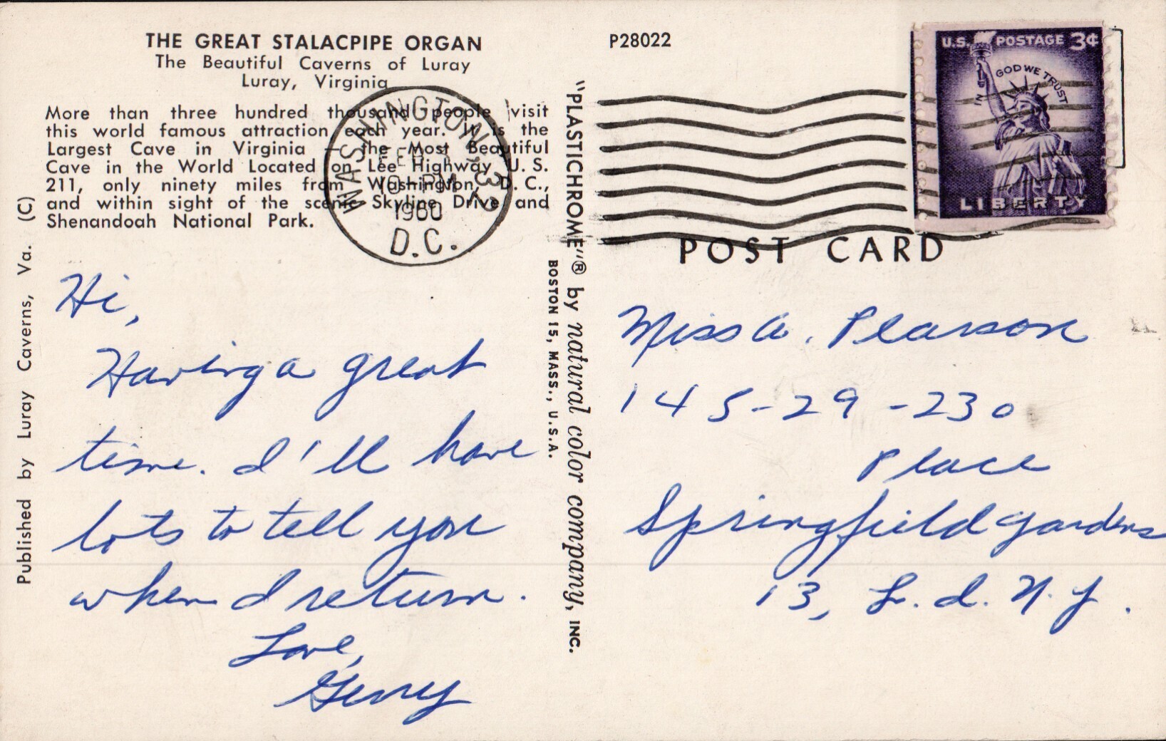 "The Great Stalacpipe Organ - Luray Caverns, Luray, Virginia Posted: Feb 3, 1980 Washington, D.C.