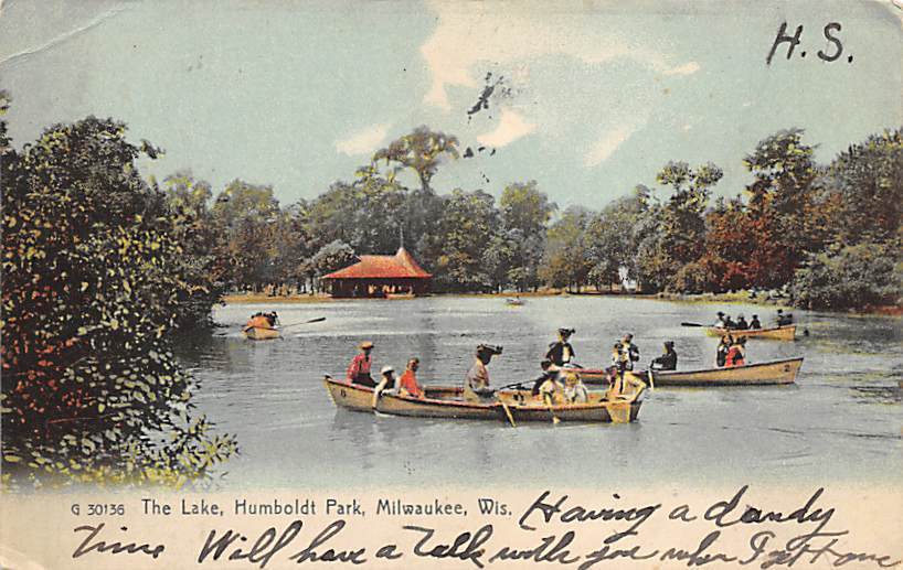 The Lake Humboldt Park Milwaukee WI Grade: 4 Size: Regular Size Postcard - approximately 3 1/2 inch x 5 1/2 inch (9 CM x 14 CM) Grading Scale: Grade 1 = Perfect corners Grade 2 = Very Minimal corner wear, no cr ... Read More