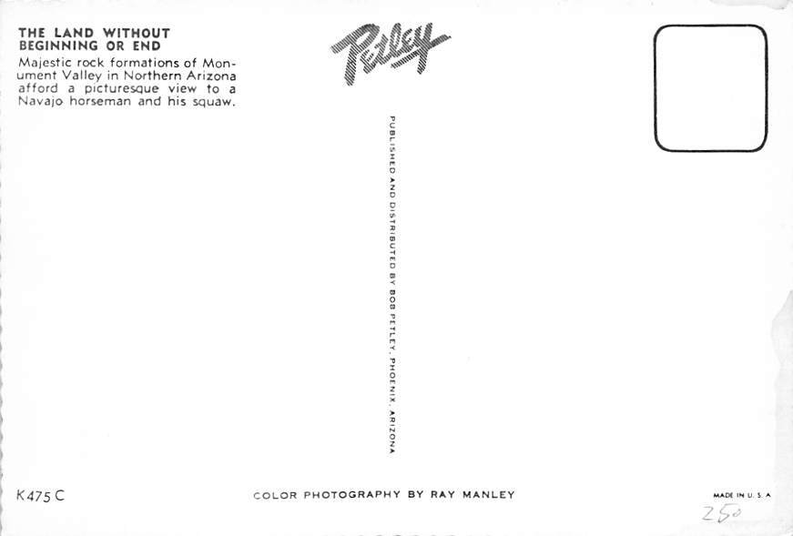 The Land Without Beginning Or End The Land Without Beginning Or End, Monument Valley In Northern Arizona Postcard - View Images Grade: 1 Size: {{Product Field 5 (Size Regular or Continental)}} - Continental Size ... Read More