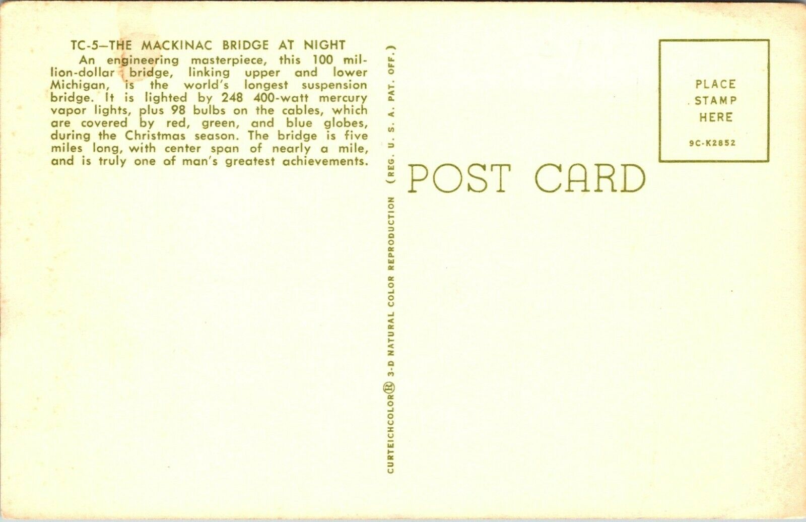 Condition:Unposted, minor wear to edges and cornersThe Mackinac Bridge at Night, Michigan Postcard