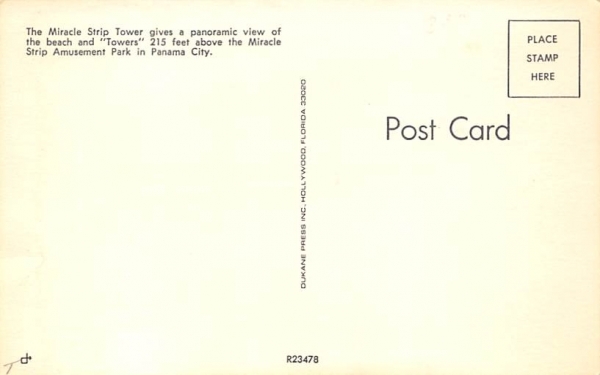The Miracle Strip Tower Panama City, Florida Postcard - Unused Grade: 1 Size: R - Regular size: Approx 3 1/2 X 5 1/2 inch (9 cm X 14 cm) Grading Scale: Grade 1 = Perfect corners Grade 2 = Very Minimal corner w ... Read More