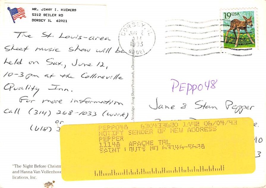 The Night Before Christmas, By Hanna Van Vollenhoven Postcard - View Images Grade: 1 Size: C - Continental Size Postcard - approximately 4 inch X 6 inch (15 CM X 10.5 CM) Grading Scale: Grade 1 = Perfect corner ... Read More