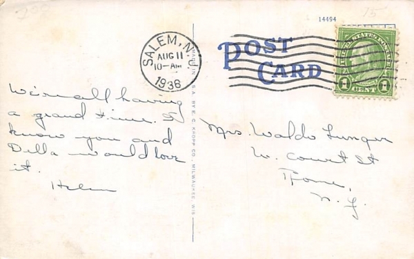 The Old Oak in Salem, New Jersey Postcard - 1936 Grade: 3 Size: R - Regular size: Approx 3 1/2 X 5 1/2 inch (9 cm X 14 cm) Grading Scale: Grade 1 = Perfect corners Grade 2 = Very Minimal corner wear, no crease ... Read More