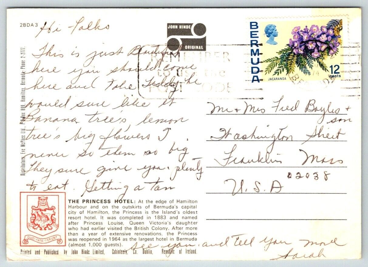 The Princess Hotel, Bermuda - 1974 - Postcard