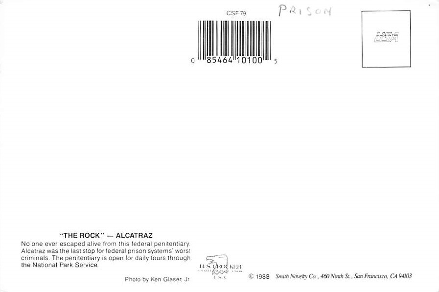 The Rock, Alcatraz Postcard - View Images Grade: 1 Size: C - Continental Size Postcard - approximately 4 inch X 6 inch (15 CM X 10.5 CM) Grading Scale: Grade 1 = Perfect corners Grade 2 = Very Minimal corner we ... Read More