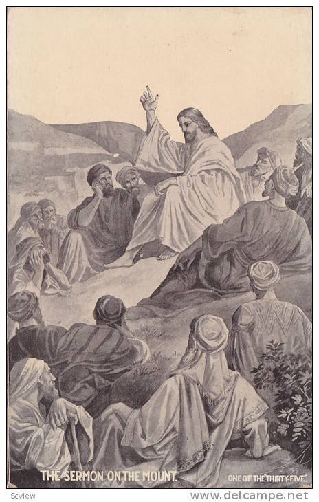 The Sermon On The Mount, Jesus, 1900-1910s :: Antique (Vintage) Original Postcard, Size (3.5" by 5.5"), Litho, VG+, Slight CW. One Of The Thirty-Five.