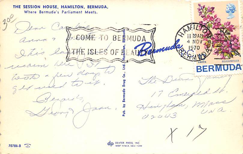 The Session House Hamilton Bermuda Postcard Postal Date: {{Product Field 4 ( Postal Used, Unused)}} Grade: 2 Size: Regular Size Postcard - approximately 3 1/2 inch x 5 1/2 inch (9 CM x 14 CM) Grading Scale: G ... Read More