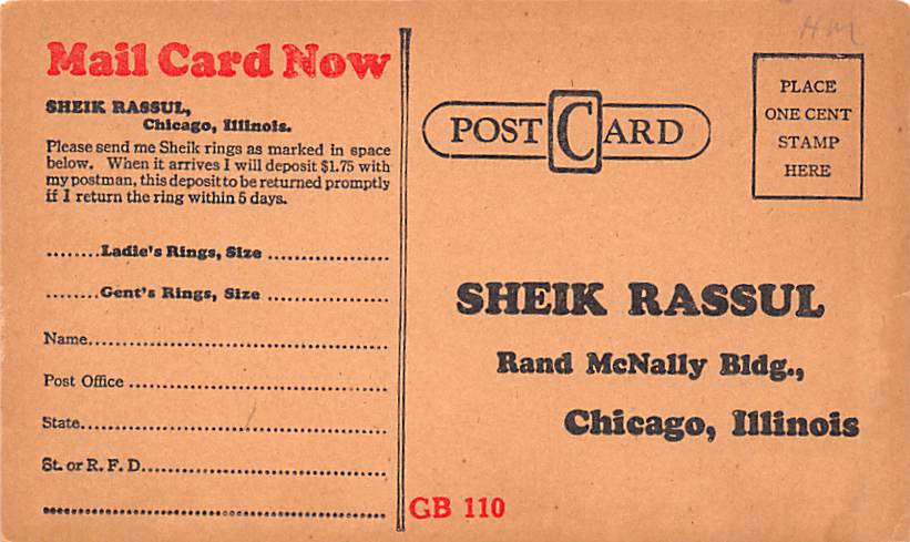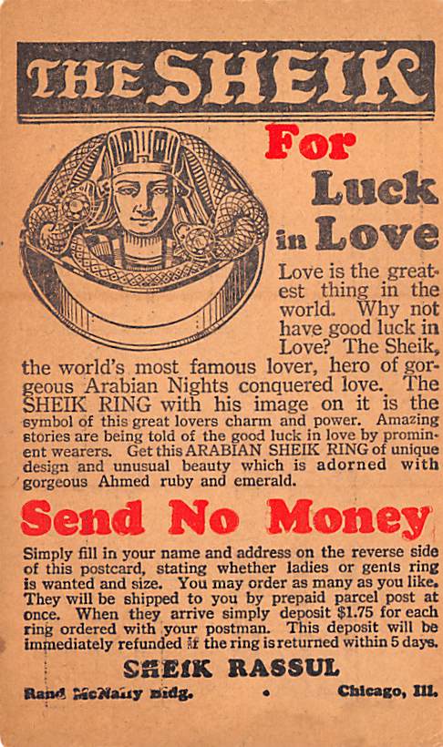 The Sheik Advertising Postcard Unused,