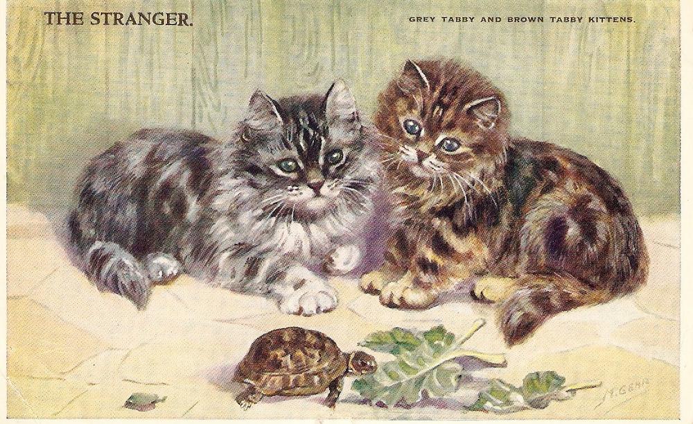 \"The Stranger, Gray and Brown Tabby Kittens\" Lovely Postcard