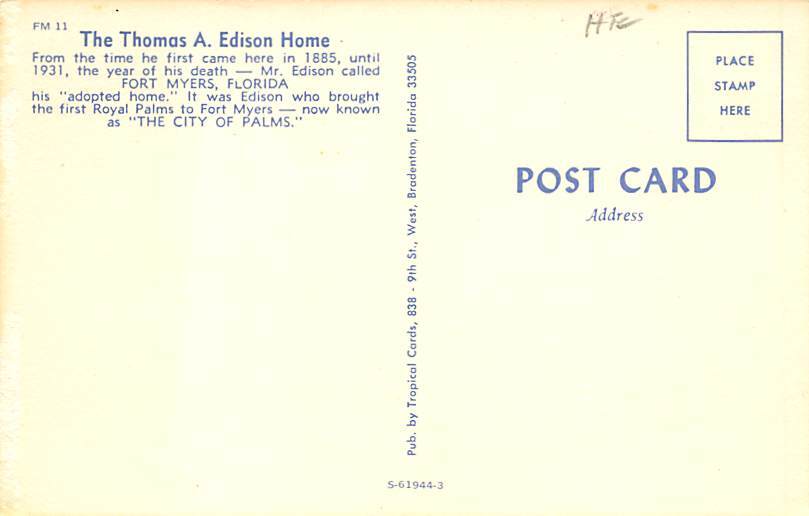 The Thomas A. Edison Home Famous People Postcard